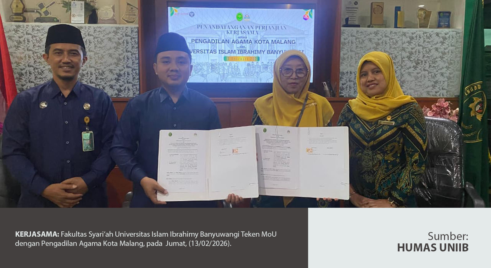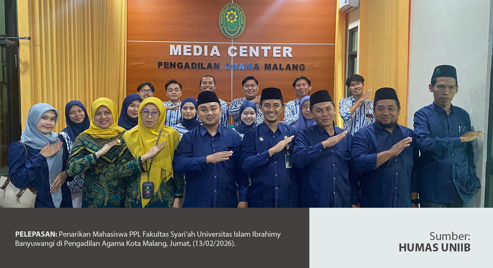 MALANG – Fakultas Syari’ah Universitas Islam Ibrahimy Banyuwangi secara resmi melaksanakan kegiatan penarikan mahasiswa Praktik Pengalaman Lapangan (PPL) di Pengadilan Agama Kota Malang, Kamis (13/02/2026). Kegiatan penarikan berlangsung di Ruang Media Center Pengadilan Agama Kota Malang dengan suasana khidmat dan penuh kehangatan.